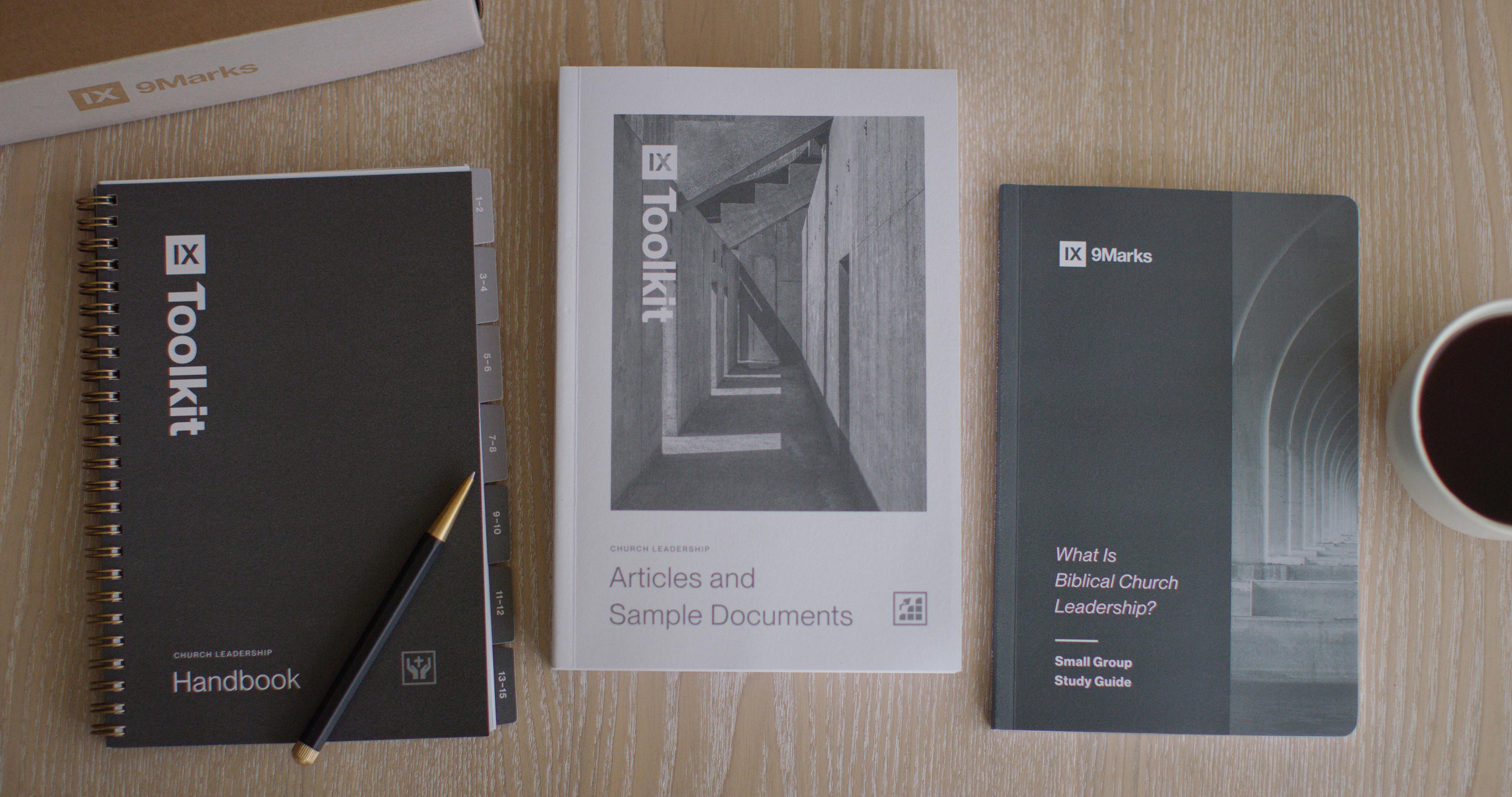 The kit includes three main tools. It comes with a spiral-bound handbook with 15 sessions of videos, questions, and church document examples on a topic pertaining to church leadership. The kit also comes with a fairly hefty book of articles and sample documents all designed to correspond to the topics of the 15 sessions in the handbook. And the third resource in the toolkit is a six-lesson small group study guide on church leadership designed study the basics of biblical leadership in a group. Each of the six-lessons contains a corresponding audio/podcast that provides further teaching on each subject.